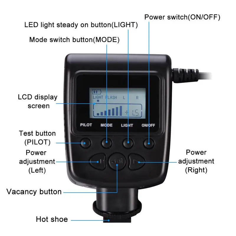- 【User-Friendly Experience】: The ring flash light boasts an LCD display for easy power control, a test button for hassle-free operation, and a vacancy button for convenient storage, providing a user-friendly and efficient lighting solution.