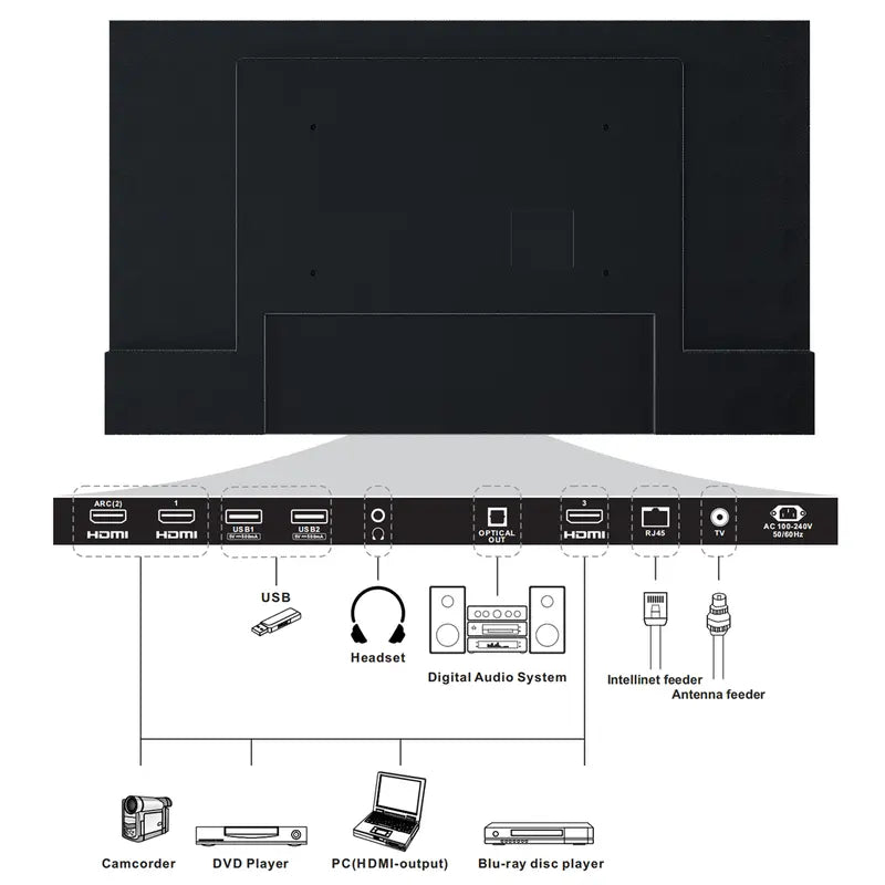 - 【Widely Compatible】 With Streaming technology, one remote control can control all external devices. Our 4K TV is equipped with HDMIx3, USBx2, RJ45, TV and AV interface.